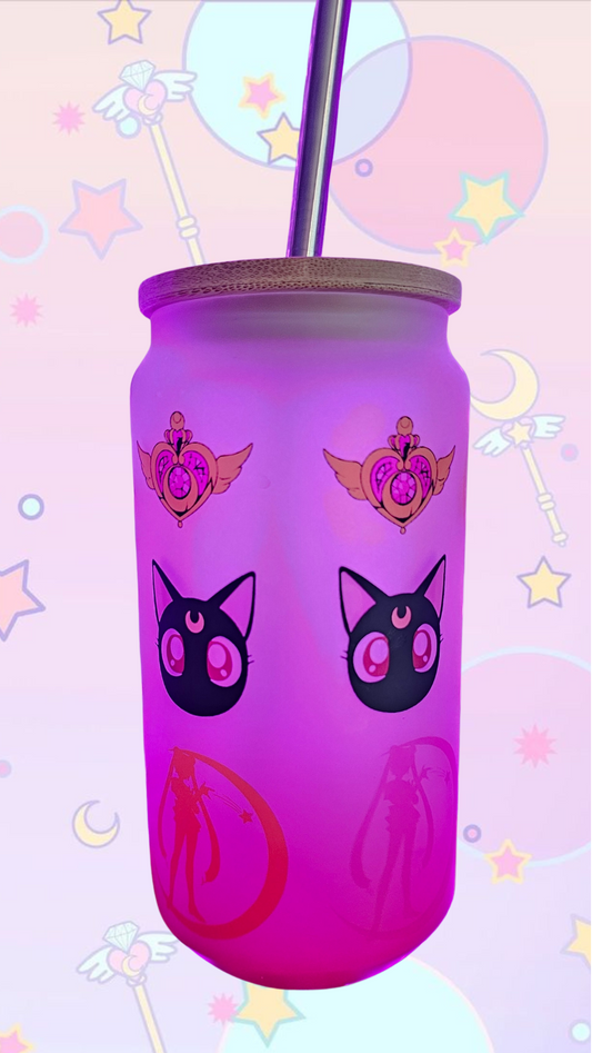 Sailor Moon Frosted Pink Ombre Glass Tumbler – 18 oz